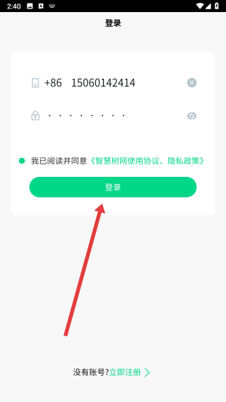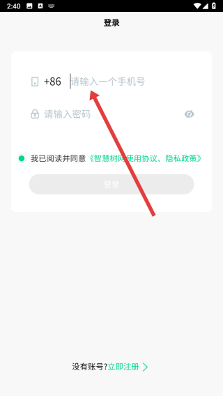 3、在勾选好同意按钮后,可以在上方输入框依次填写手机号和密码信息。
