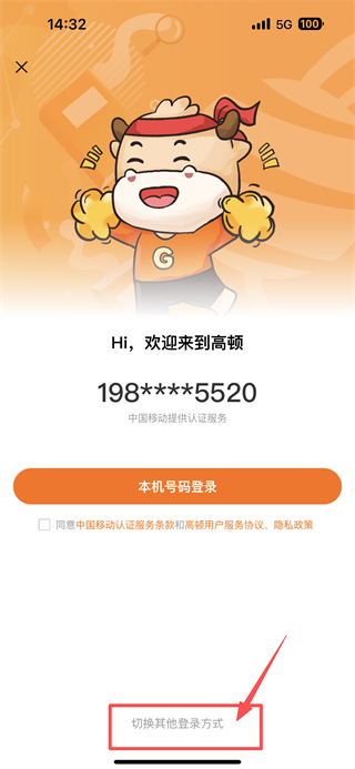 3、在登录选择界面,点击切换其他登录方式选项,进入手机号登录页面。