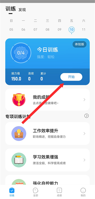 1、在未来之光的训练页面,点击开始,进入每日训练任务页面。