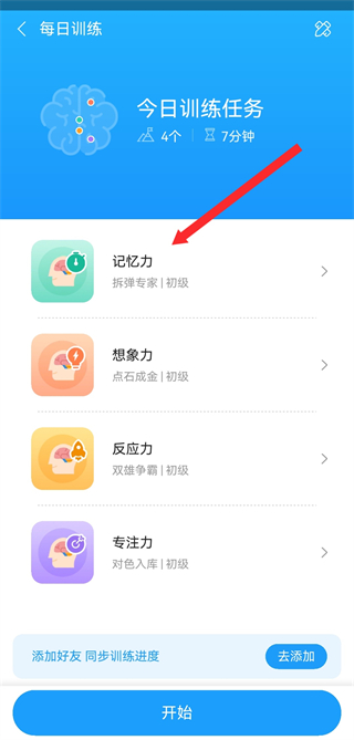 2、在每日训练任务页面,选择记忆力训练分类,进入记忆力训练详情页面。