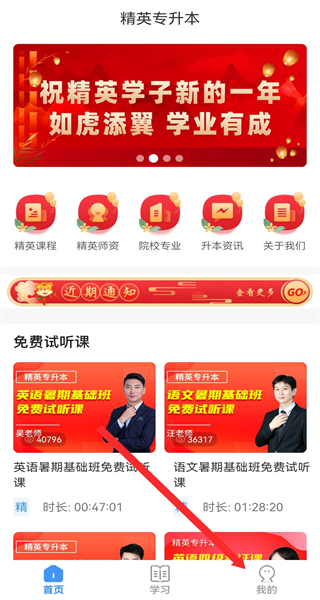 1、在精英专升本的首页,点击底部我的按钮,进入个人页面。