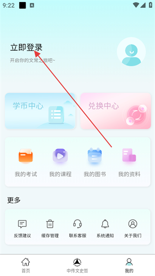 2、在我的页面中,点击立即登录文字,进入登录页面。