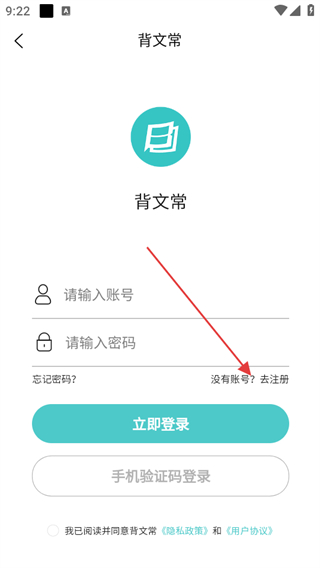 3、在登录页面,点击没有账号?去注册选项,进入注册页面。