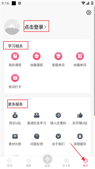 5、点击我的,可进行登录操作,还能查看学习相关内容,享受更多服务,像购买U钻、邀请好友、问题反馈等。