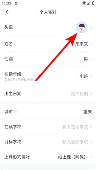 3、在个人资料的页面,点击头像的选项,弹出头像的选择方式。