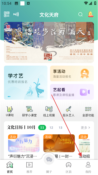 “文化天府”是一款方便市民了解馆内动态、报名培训学习、交流作品思想、参与公益活动的移动APP,通过文化与科技的融合,让市民可以随时随地的享受公共文化服务,真正实现突破公共服务空间和时间的制约。