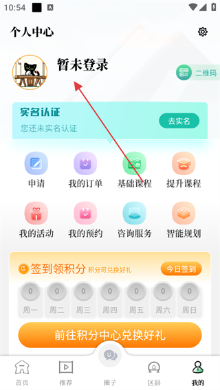 2、在个人中心页面,点击暂未登录按钮,进入登录页面。