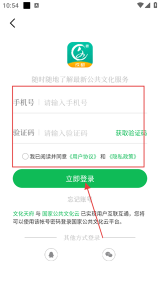 3、输入手机号、验证码,勾选用户协议和隐私政策,点击立即登录。