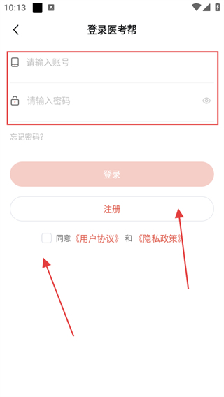 3、输入账号和密码,点击注册,勾选同意用户协议和隐私政策,完成注册。