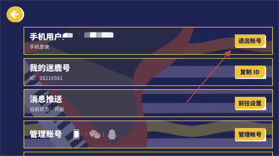 2、进入设置界面后,找到手机用户信息栏,点击右侧的退出账号按钮。