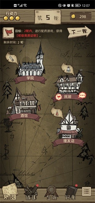 2、地图系统说明:理发店、民居、医学院、酒馆分别对应放血疗法、药物配制、截肢手术与社交互动。若地图未显示某些地点,表明剧情尚未解锁,推进主线后即可开放。