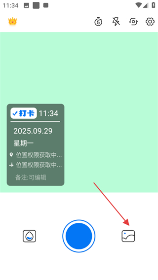 1、在智能打卡水印相机首页点击页面下方的图片图标,进入图片选择页面。