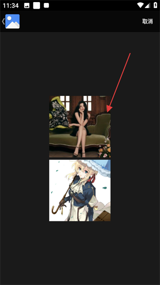 2、在图片选择页面,在两张图片当中选择要编辑的图片。
