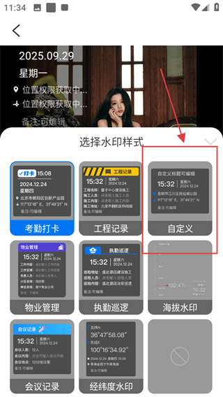 4、在水印选择页面,选择自定义水印样式,完成自定义水印设置。