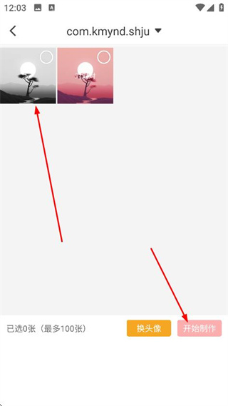 3、在图片选择页面,选择要制作的图片后,点击开始制作,进入图片处理页面。
