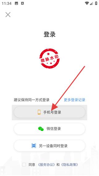 3、在登录页面,选择手机号登录,进入手机号登录页面。