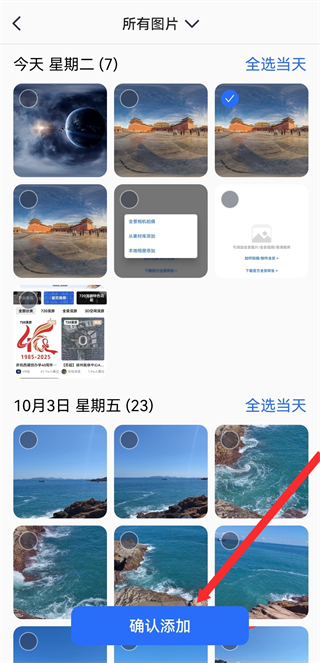 4、在界面选择要添加的图片后,点击确认添加,完成图片添加操作。
