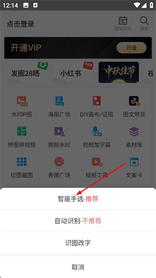 2、在操作选项菜单中,点击智能手选推荐,进入照片选择页面。