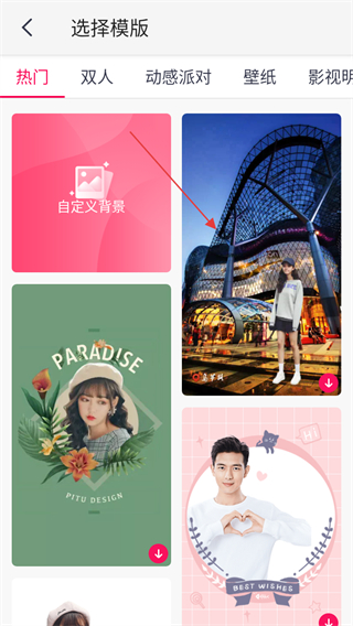 2、在选择模板页面,选择喜欢的模板,进入抠图准备页面。