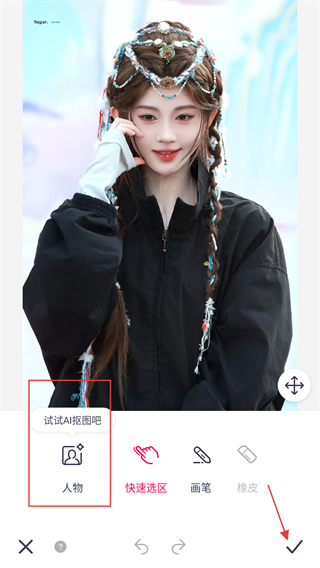 5、在抠图编辑页面,选择人物抠图方式,完成后点击确认,即可完成抠图。