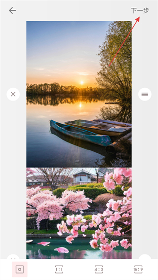 3、在图片预览页面,确认所选图片后,点击下一步,进入拼接编辑页面。