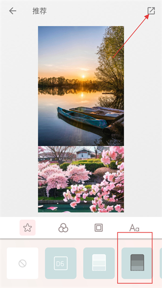 4、在拼接编辑页面,选择喜欢的模版后点击右上角图标,即可保存。