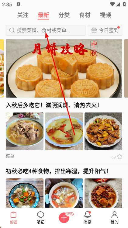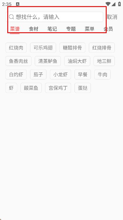 2、在搜索框中,输入想要查找的菜谱名称。