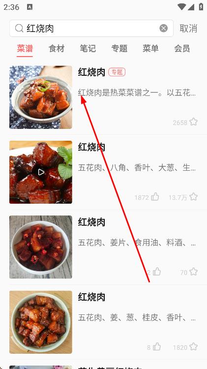 3、在搜索结果中,点击需要收藏的菜谱。