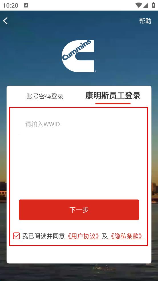 4、在相应输入框中输入WWID,勾选已阅读并同意相关协议,点击下一步。