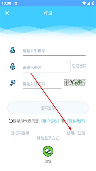 1、打开小依洗衣机,在登录界面点击右下角新用户注册选项。