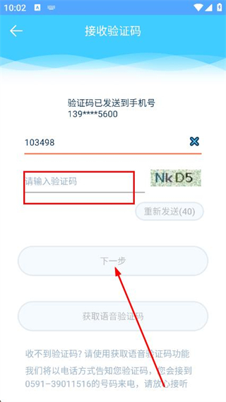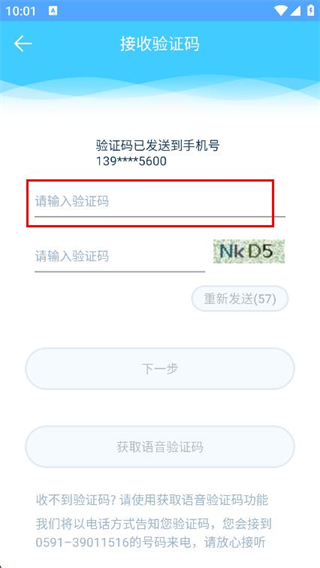 3、在接收验证码页面,输入手机接收到的短信验证码。