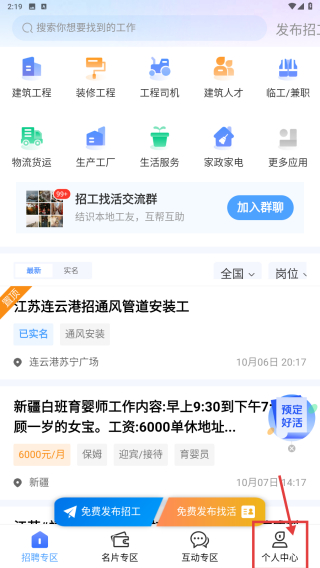 2、海量招工信息库:汇聚大量建筑项目招工信息,涵盖不同工种、地域的招聘需求,企业可发布招工信息,工人能快速查找适配岗位,解决供需对接难题。