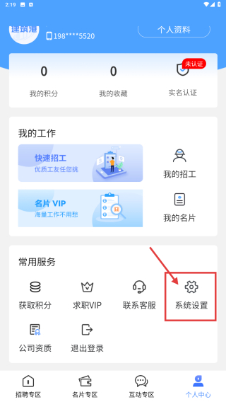 2、在个人中心,点击系统设置选项,进入设置功能区。