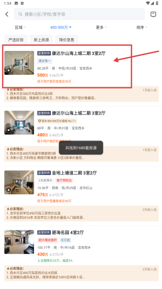 4、在筛选后的房源列表中,点击具体房源条目,查看房源详细信息。