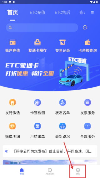1、打开ETC服务类应用,点击底部我的选项,进入个人中心页面。