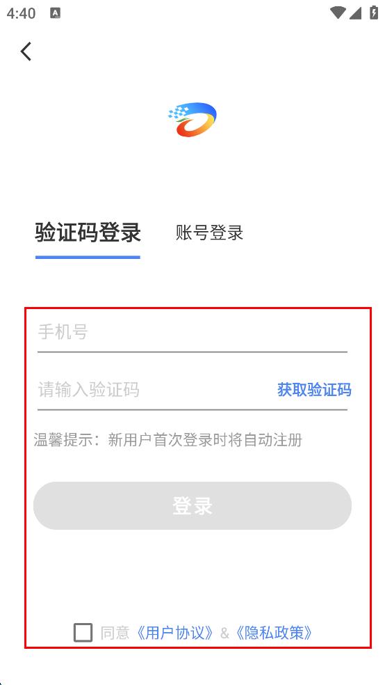 4、在登录界面输入手机号,点击获取验证码,输入验证码,勾选同意相关协议后点击登录,完成登录操作。