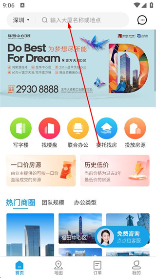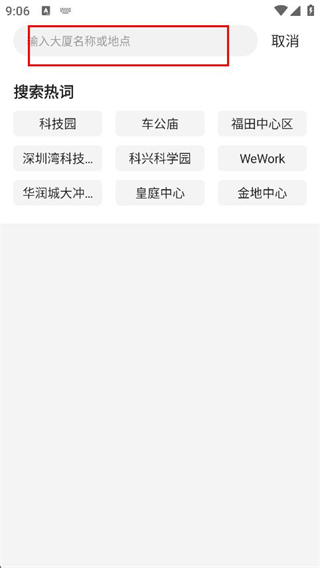2、点击搜索框并输入目标大厦名称或具体地点。