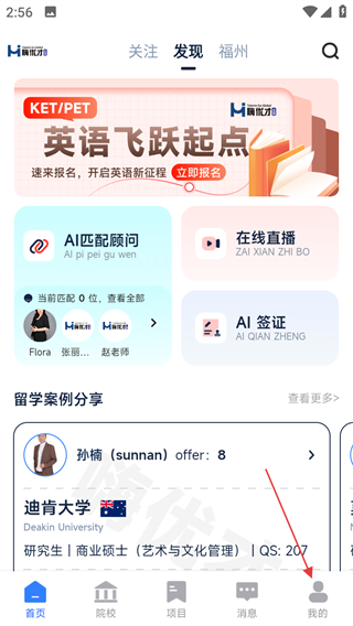 2、沉浸式院校沟通:通过在线直播实现用户与海外院校代表直接对话,定期组织云逛校园、留学生经验分享活动,直观了解院校环境与就读体验。