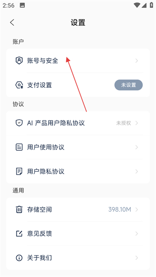 3、在设置页面,点击账号与安全,进入账号与安全设置页面。