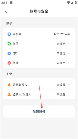 4、在账号与安全页面,点击注销账号,可进行账号注销操作。
