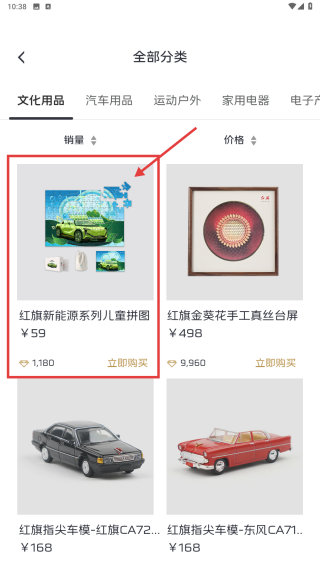 3、选择红旗新能源系列儿童拼图商品条目,进入商品详情页面。