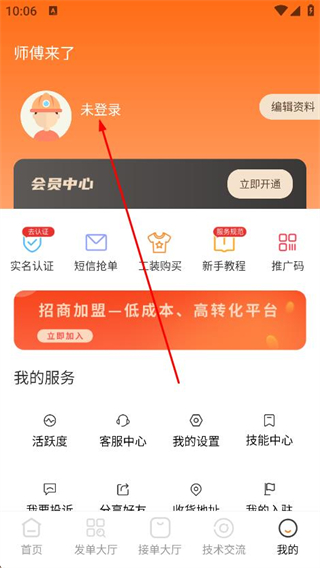 1、打开师傅来了,点击底部导航栏最右侧我的选项。