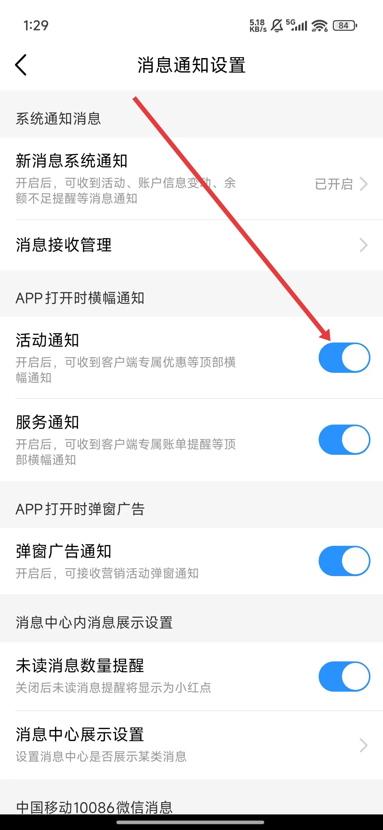 中国移动app活动通知怎么取消