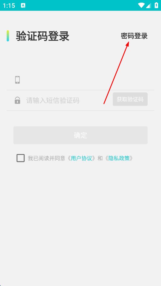 1、打开某APP,进入登录页面,点击“密码登录”选项。