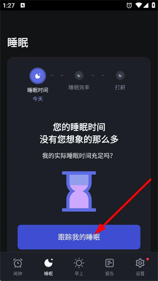 2、在睡眠页面,点击跟踪我的睡眠,进入睡眠分析准备页面。