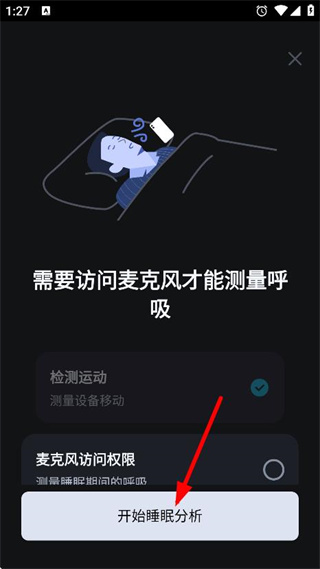 3、在睡眠分析准备页面,点击开始睡眠分析,可启动睡眠的分析。