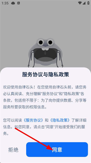 1、在服务协议与隐私政策弹窗中,点击同意,进入主界面。