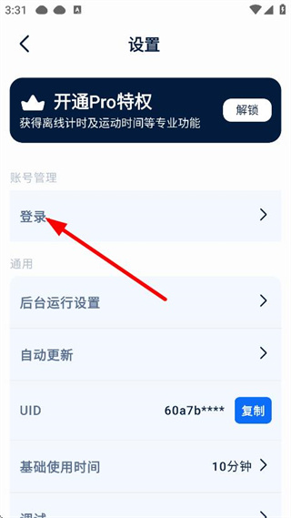 3、在设置页面,点击登录,进入登录方式选择页面。