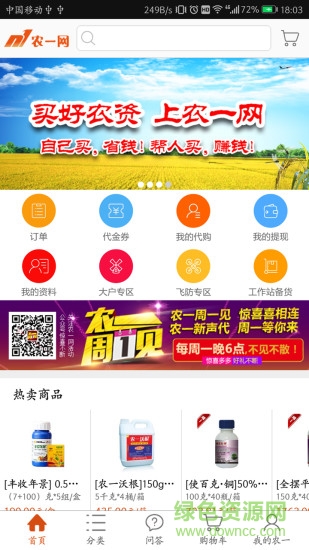 手机上网买品牌农药,轻松做代购赚钱,找农一APP就购了。农一网手机客户端目前共设计了申请代购、秒杀专区、农药商城三大板块,通过手机下载移动客户端,成功安装,可以完成申请、注册、选货、下单、支付等购物流程。