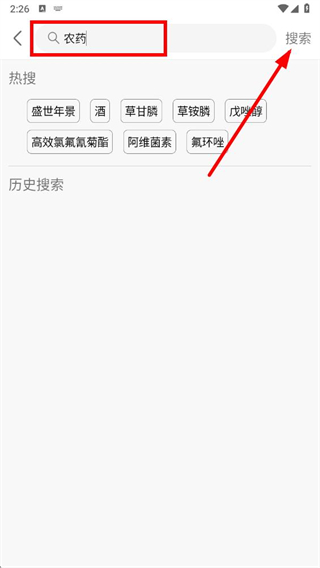 2、在搜索框中输入想要购买的农药名称,或直接搜索农药,然后点击右侧的搜索按钮。